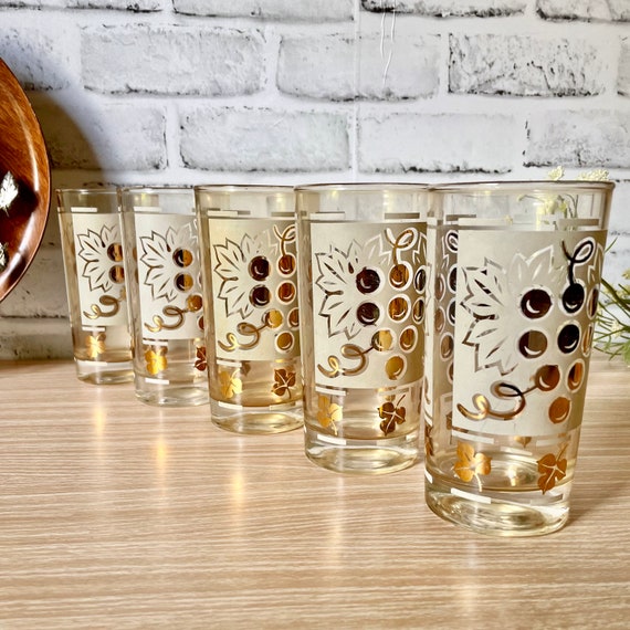 Vintage Anchor Hocking Golden Grapes Ivy Glassware Tumblers Etsy