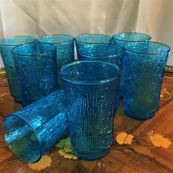 9 Vintage Electric Blue Libbey Bar Glasses Bamboo Pattern Etsy