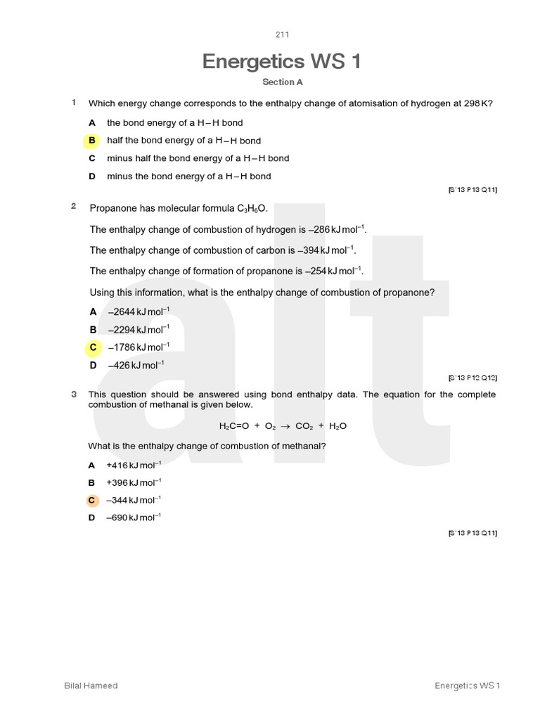 A1 Chm Sol 11 Energetics Ws Pdf Methane Combustion